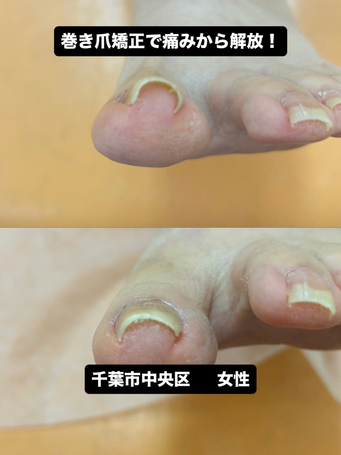 千葉市中央区で巻き爪による痛みに悩む方へ。巻き爪じゅん千葉駅前店では独自の巻き爪矯正で痛みを軽減し、巻き込みの再発を防ぐサポートを行っています。医療行為ではない安心の施術で、巻き爪の悩みを解消し日常生活を快適に。 2025/10/30